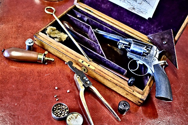 Near the middle of the river the Irishman felt for the sidearm in his pocket. He was carrying a new Beaumont-Adams percussion revolver. The cylinder held five rounds, although he knew he wasn’t going to miss his man with his first shot. He intended to be standing face to face with him when he dispatched the villain. He walked up to Tom Spate.